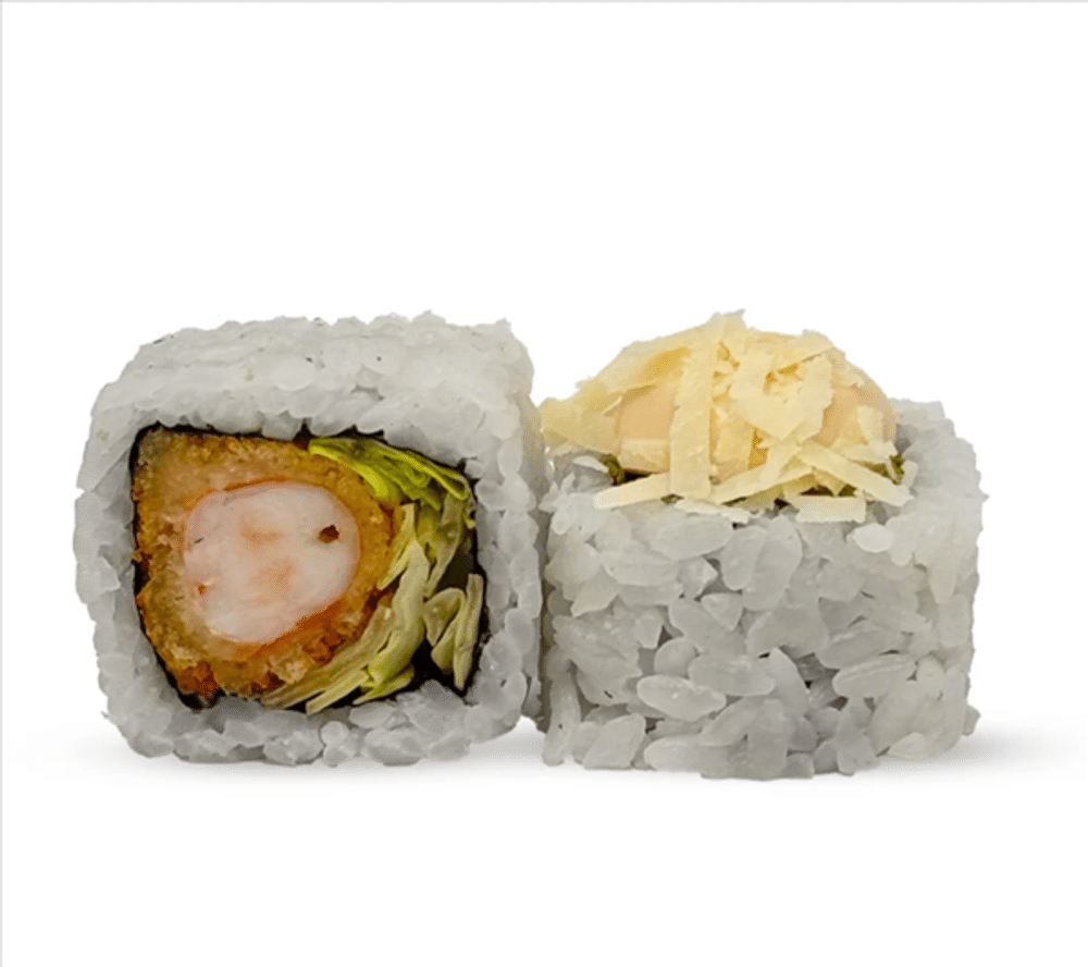 Рис, нори, креветка в кляре, салат айсберг, цезарь соус, пармезан (8 шт.).
