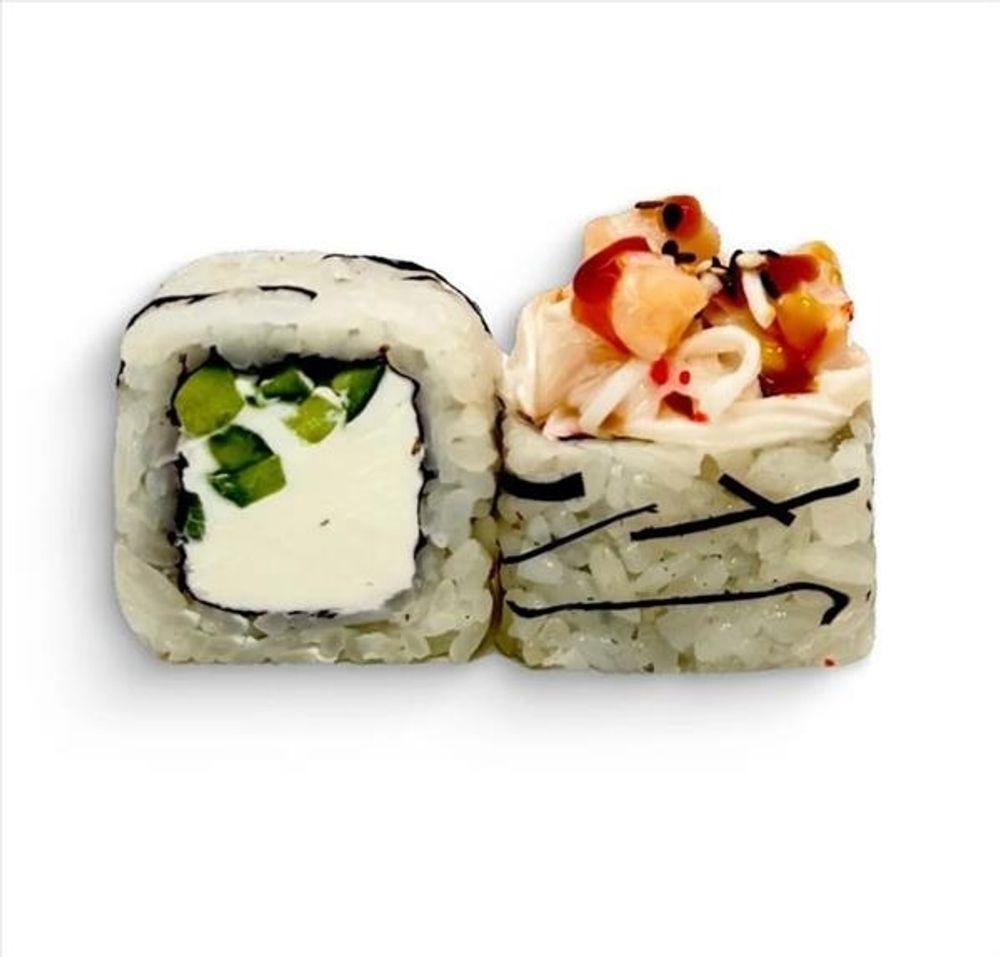 Рис, нори, огурец, сыр сливочный, краб снежный, креветки, юдзу-май, кунжут, унаги-соус. (8 шт.)