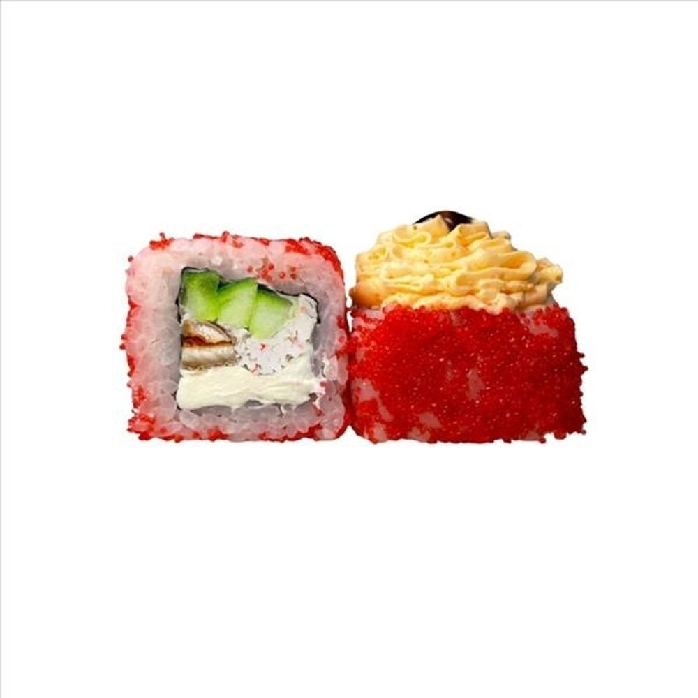Сливочный сыр, угорь, унаги соус, снежный краб, огурец, икра масаго, яки-соус (8 шт.)