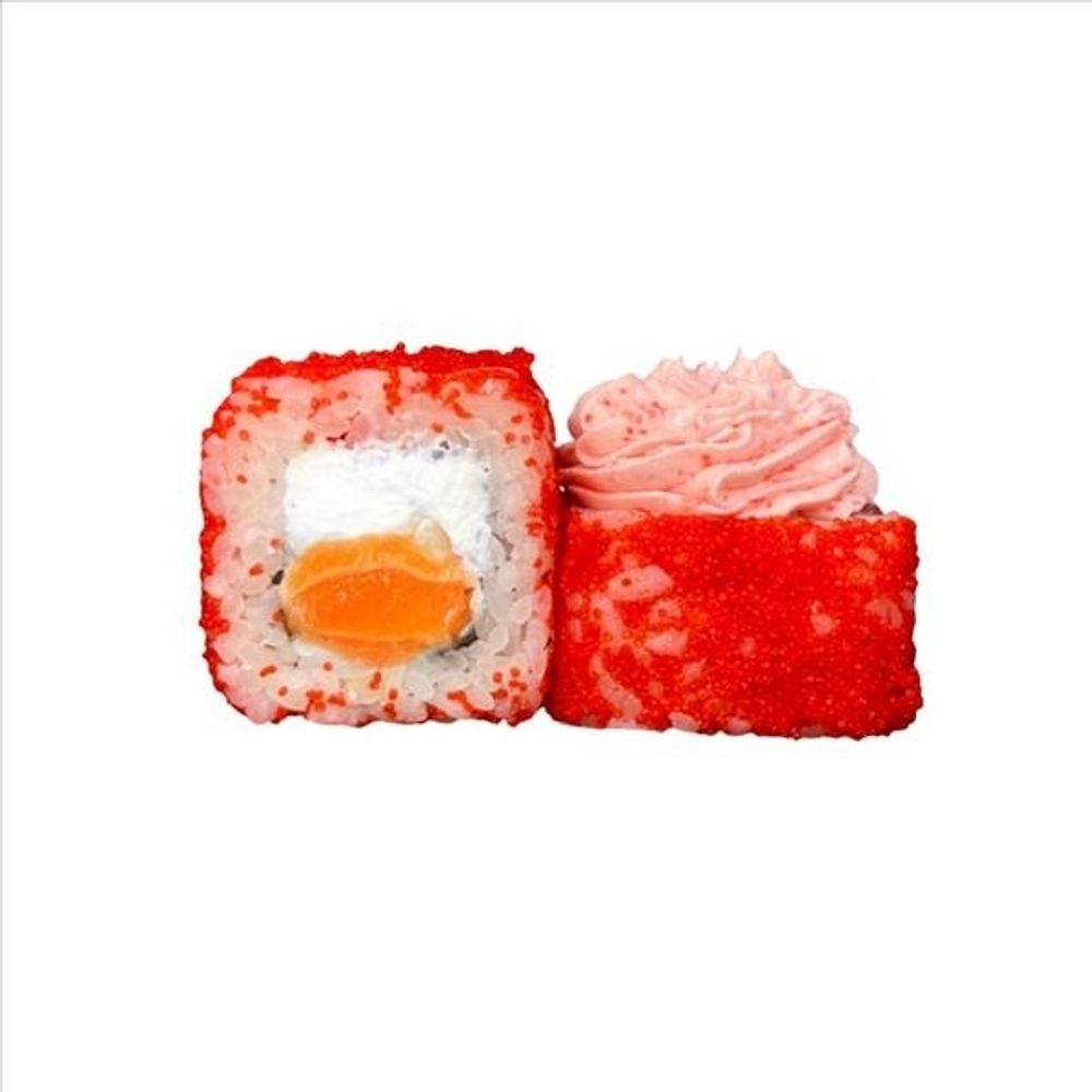 Рис, сыр сливочный, масаго оранжевая, лосось копченый, яки-соус (8 шт.)