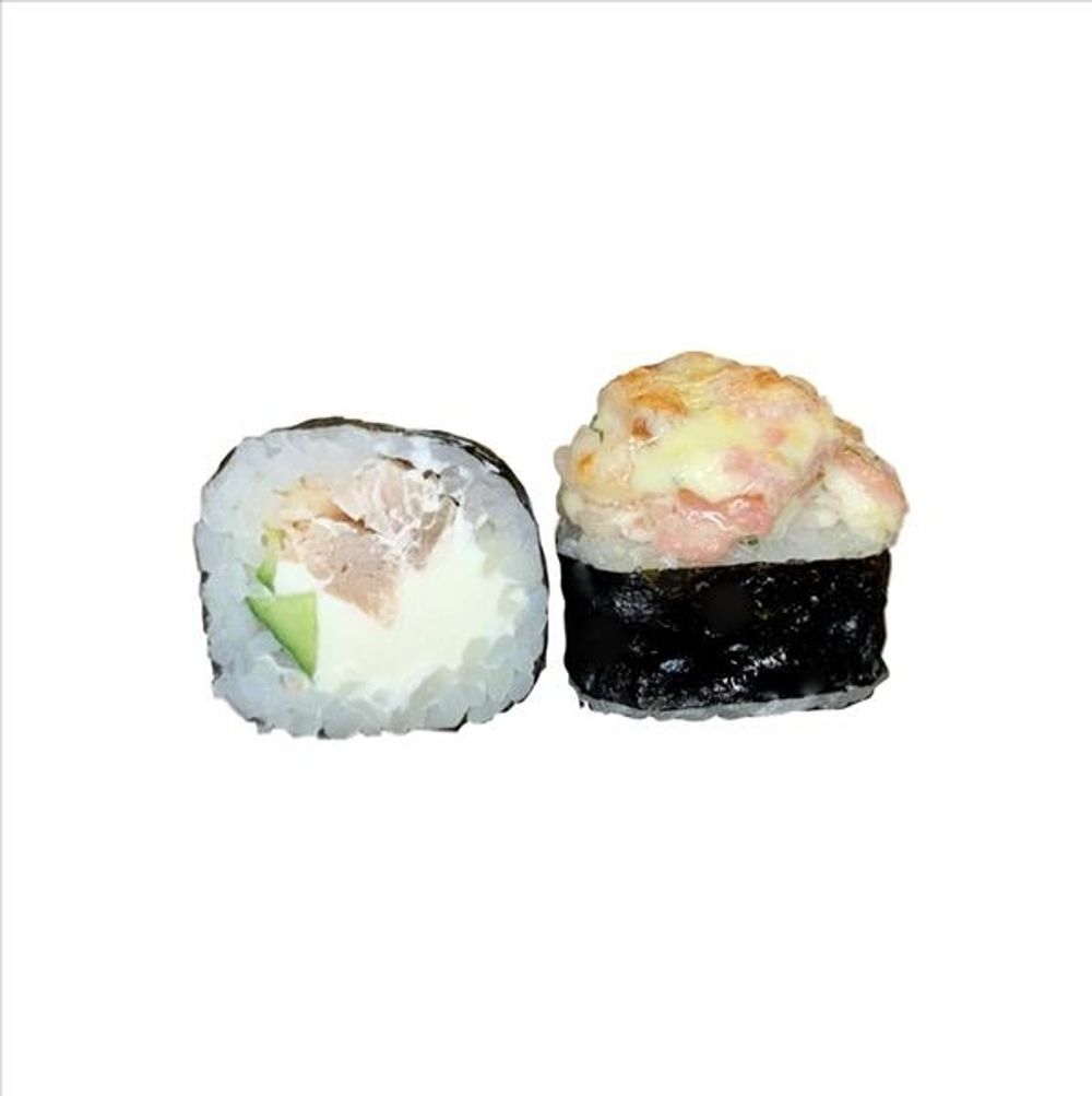Кура копченая, салат, творожный сыр, бекон, сырно-чесночный соус (8 шт.)