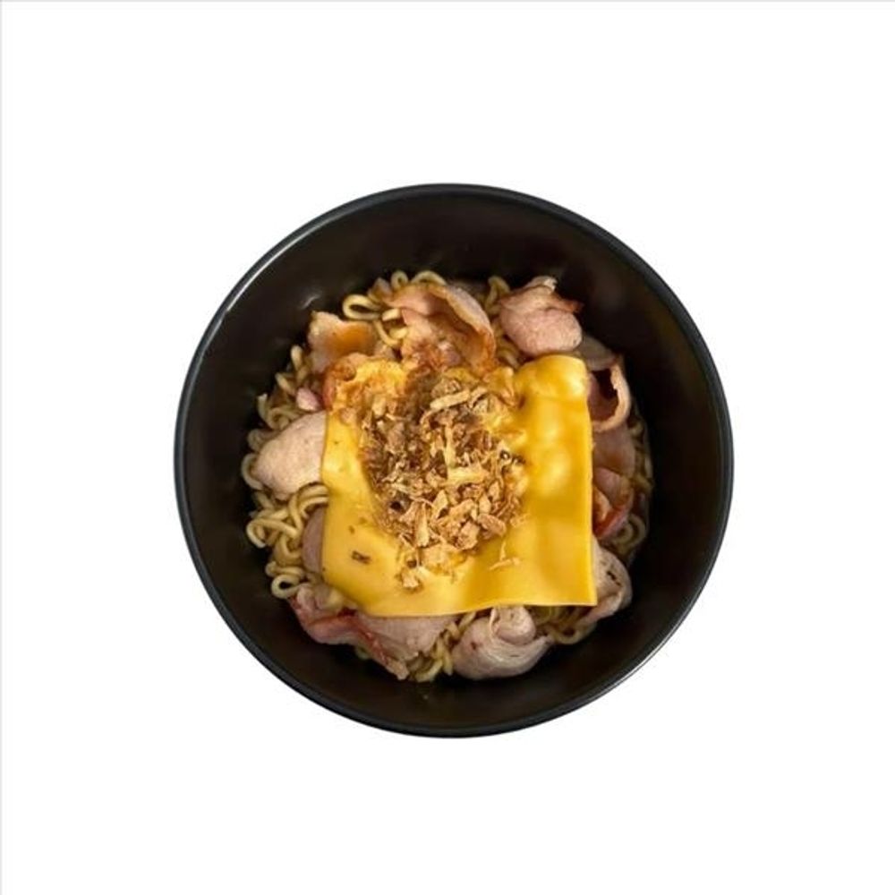 Сырно-сливочный бульон, лапша рамен, бекон, чеддер, лук фри.