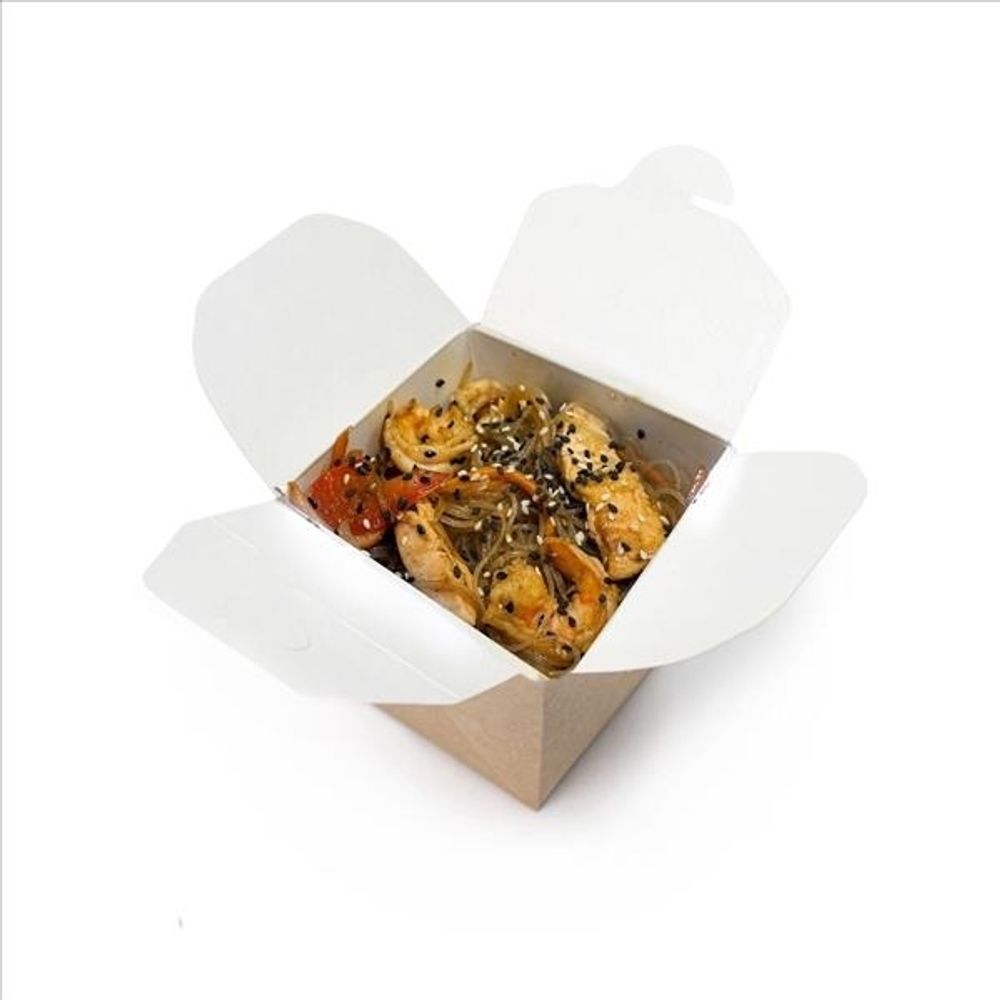Лапша рисовая, морковь, перец болгарский, лук репчатый, фирменный соус, креветки, лосось, кунжут жареный.