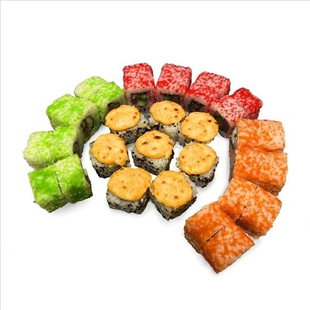 Калифорния с тунцом (8 шт.). Запеченная Калифорния с креветкой (8 шт.). Калифорния классик (8 шт.). Калифорния с лососем (8 шт.) (32 шт.)