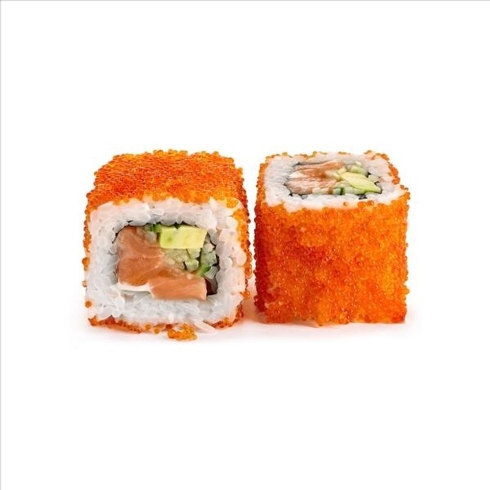 Ролл с лососем, сливочным сыром и огурцом в оранжевой икре капеллана масаго (8 шт.)