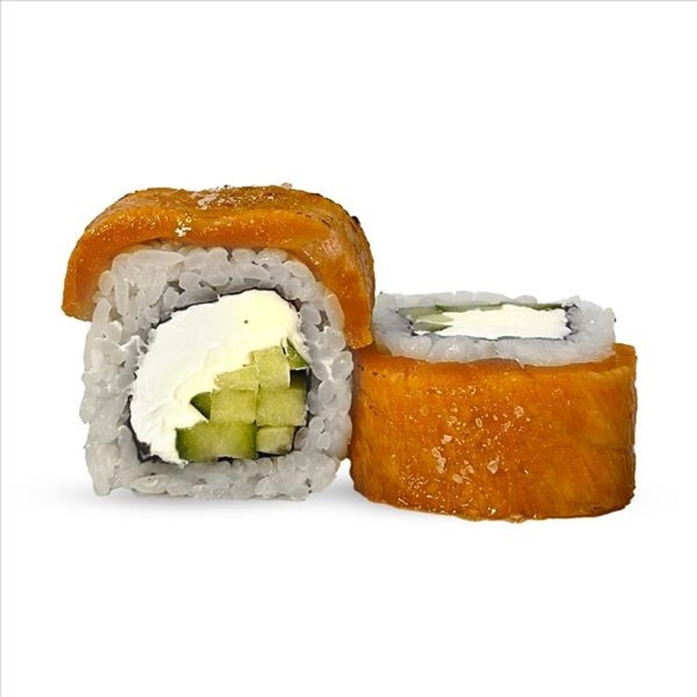 Рис, сыр творожный, лосось слабосоленый, соль морская, сахар карамелизированный (8 шт.).